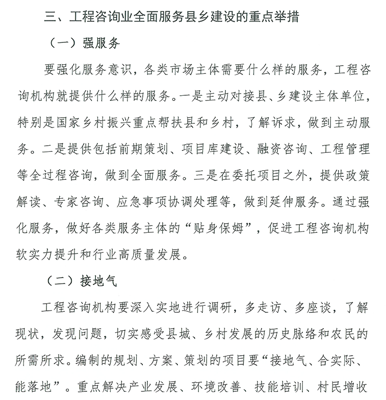 縣城城鎮(zhèn)化建設、鄉(xiāng)村建設是一項宏大的社會工程,需要整體的、長遠的規(guī)劃。特別是城鄉(xiāng)“二元”化結構較為明顯,大部分鄉(xiāng)鎮(zhèn)和村莊發(fā)展規(guī)劃欠缺,村落布局散亂,公共服務供給不足,嚴重制約了縣城、鄉(xiāng)村發(fā)展。規(guī)劃咨詢,注重規(guī)劃先行,因地制宜,可運用工程技術、科學技術、經濟管理和法律法規(guī)等多學科的知識與經驗,為縣城建設項目決策提供智力服務,解決縣城發(fā)展與定位問題,避免錯亂發(fā)展,無效競爭。