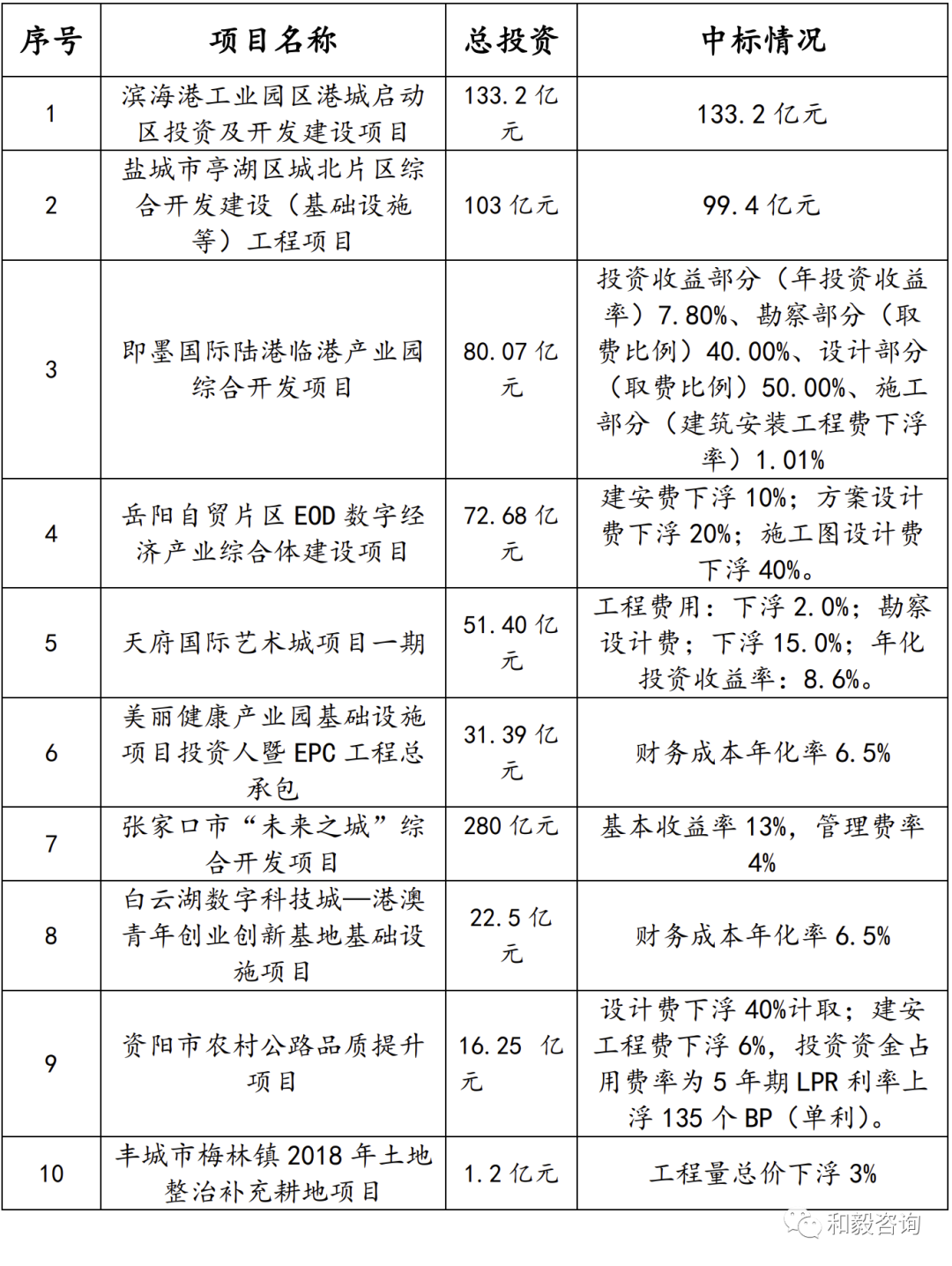 表3 國內“投資人+EPC”典型項目中標情況表
