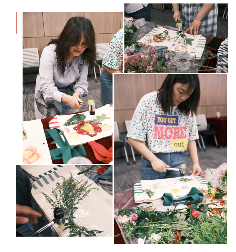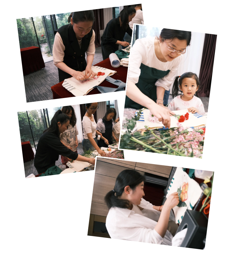 本次母親節(jié)創(chuàng)意植物拓染活動(dòng),不僅是一次藝術(shù)創(chuàng)作體驗(yàn),更是一場(chǎng)心靈的放松之旅,幫助媽媽們釋放日常生活的壓力,“敲敲”找回快樂(lè)的自己。