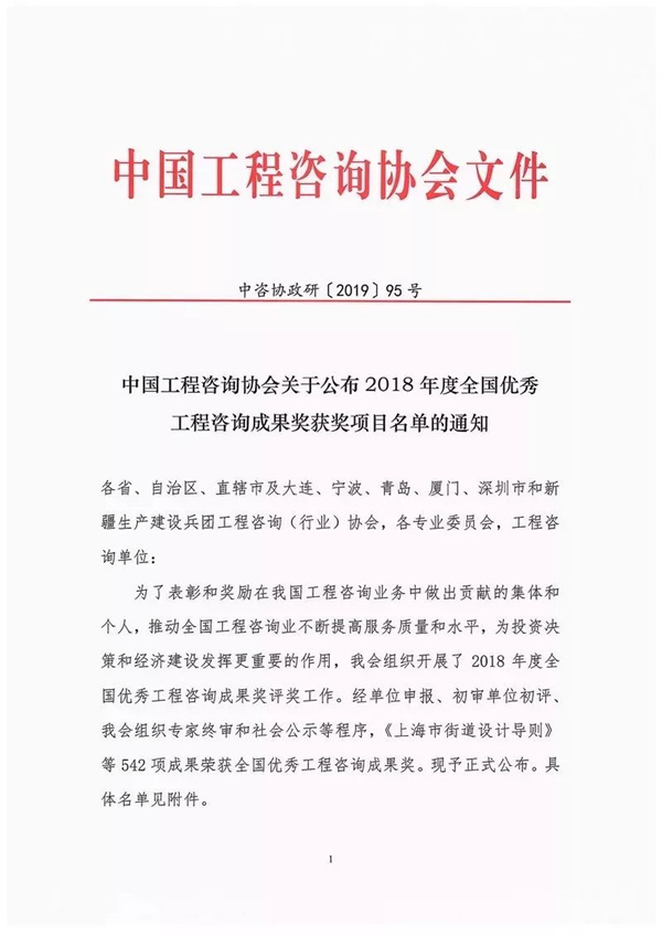 “全國優(yōu)秀工程咨詢成果獎”自1996年經國家發(fā)改委批準正式設立,后經國務院監(jiān)察部確認保留,并由中國工程咨詢協(xié)會每兩年組織評選一次的工程咨詢行業(yè)的全國性獎項,旨在表彰和獎勵在我國工程咨詢業(yè)務實踐中做出突出貢獻的集體和個人,獲獎項目被認為是代表我國工程咨詢界最高水平的項目,其工程咨詢成果具有創(chuàng)新性和推廣應用前景,能夠積極地推動全國工程咨詢業(yè)服務質量和水平的不斷提高,促進投資決策科學、規(guī)范地實施,更好地為我國經濟建設發(fā)展提供專業(yè)的咨詢服務。