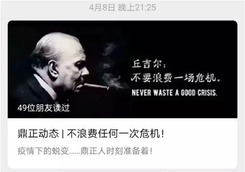在疫情爆發之始,鼎正公司領導高度關注疫情動態,辦公場所每日消毒,周密防控。在封城之時,呼吁全體同事安心在家做好防疫,不給社會增加負擔。