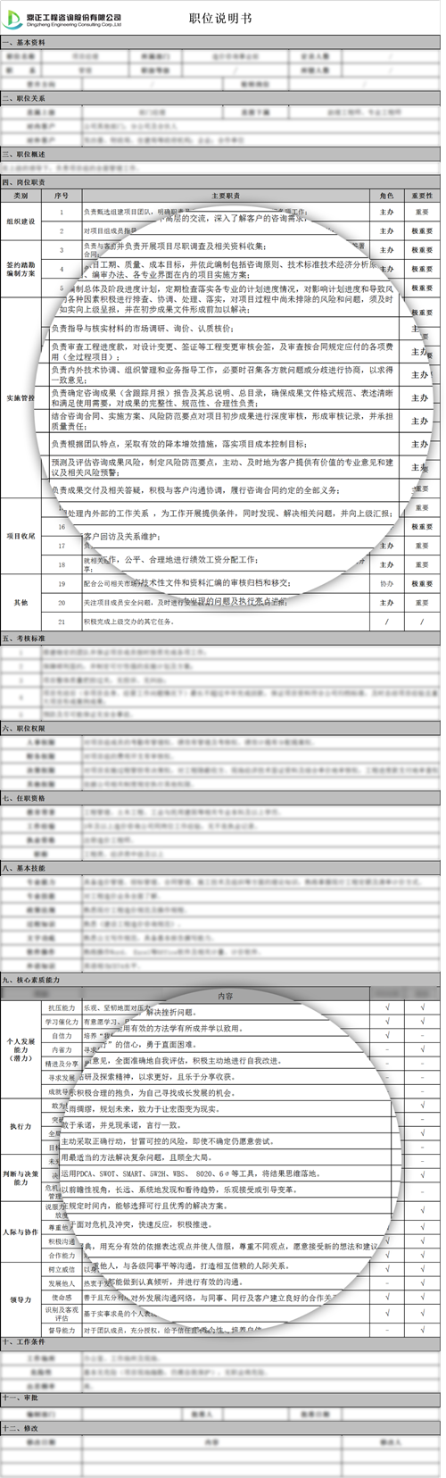 ▲鼎正造價咨詢事業部項目經理職位說明書